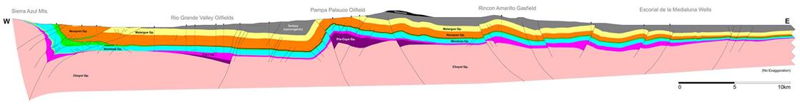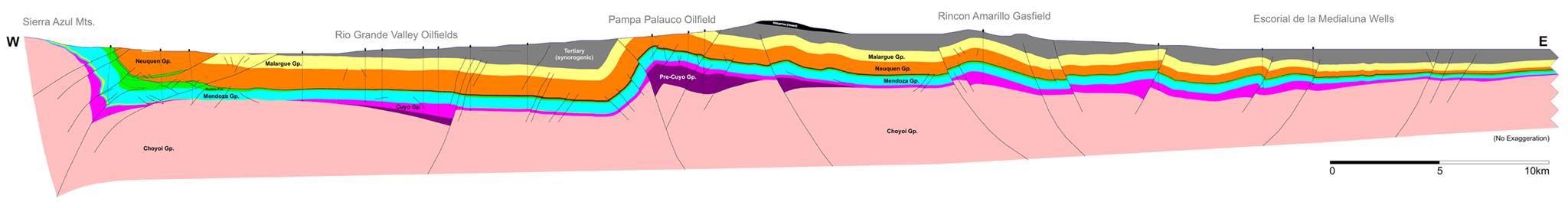 Field-scale cross-section of the Los Cavaos oil field, Argentina (Witte et al., 2012).